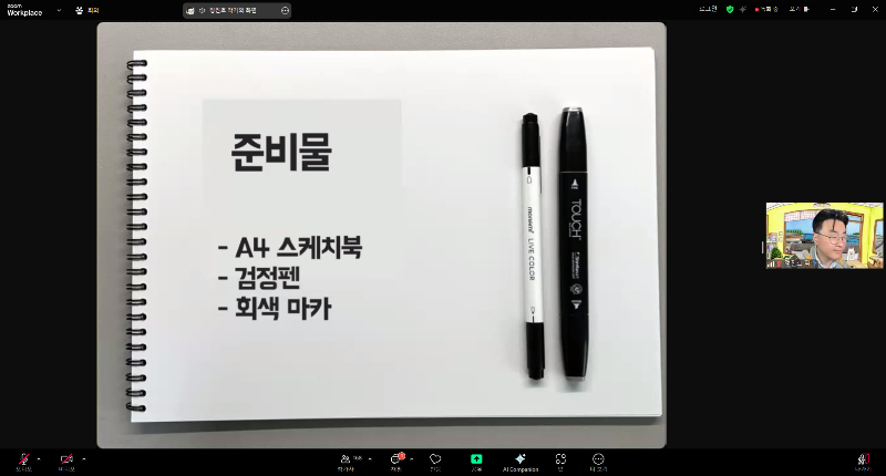 - 강의 준비물 A4 스케치북, 검정펜, 회색마카 또는 회색형광펜 (요즘 형광펜이 형광 아닌, 색깔별로 잘 나오거든요)