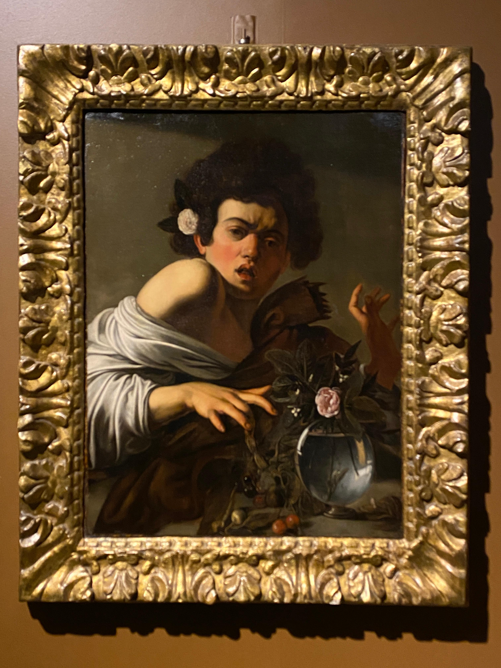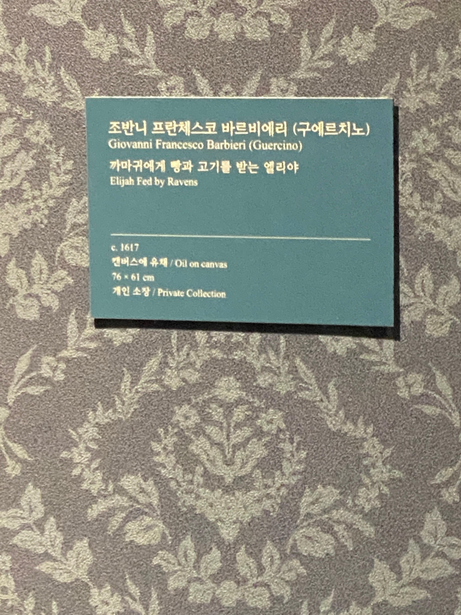 실제로 보면, 까마귀와 어둠 배경이 잘 티가 안나게 채색 된걸 볼 수 있다. 카라바조의 대표작 도마뱀에게 물린 소년, 도마의 의심, 골리앗의 머리를 들고 있는 다윗, 막달라 마리아의 황홀경 등 총 열개의 작품과 카라바조 라이벌이자 당대 최고 화가 안니발레 카라치 작품 외에 위의 작품처럼 구에르치노, 오라치오 젠틸레스키 등의 다양한 바로크 화가의 작품을 같이 볼 수 있다. 작품 전체 미술관 소장품 보다 개인소장이 생각보다 많았다.