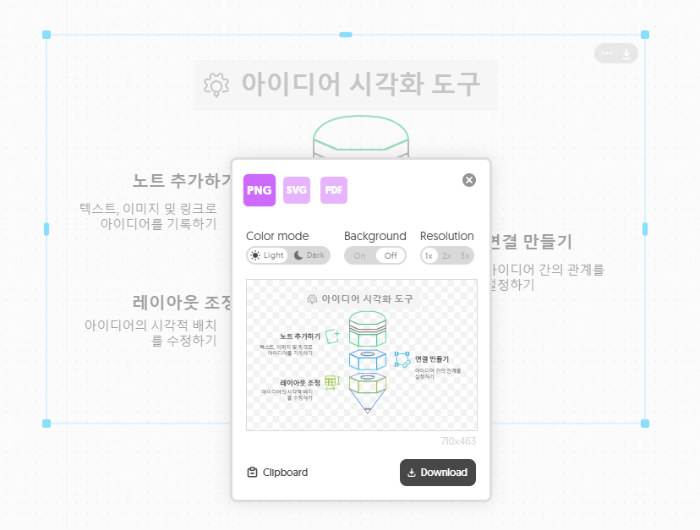 - 이미지 파일 내보내기: 시각화된 아이디어를 이미지 파일로 저장할 수 있습니다.
