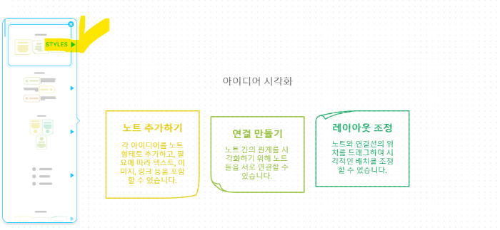 - 아이디어를 시각적으로 정리하기 위해 다양한 도구를 사용할 수 있습니다.