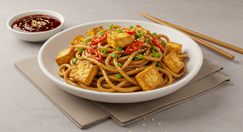 - 구운 두부와 쑥갓을 넣고 살짝 섞어준 후, 참기름과 통깨를 뿌려 완성합니다.