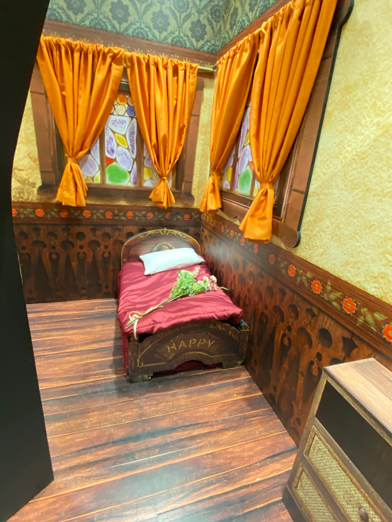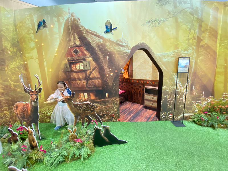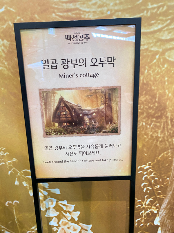 총 네 개 공간으로 구성됐는데, 입구부터 동물들과 백설공주가 반겨주는 아치형 구조라서 마치 동화 속으로 들어가는 구성이였다. 안으로 들어가면 영화 속 백설공주와 일곱 난쟁이 오두막을 그대로 재현한 공간 포토존이 있는데 따뜻하고 아늑한 분위기가 포인트로 아주 잠깐 있었는데 꼬마 아가씨들이 드레스 입고 와서 사진을 찍어가더라. 귀여워 : )
