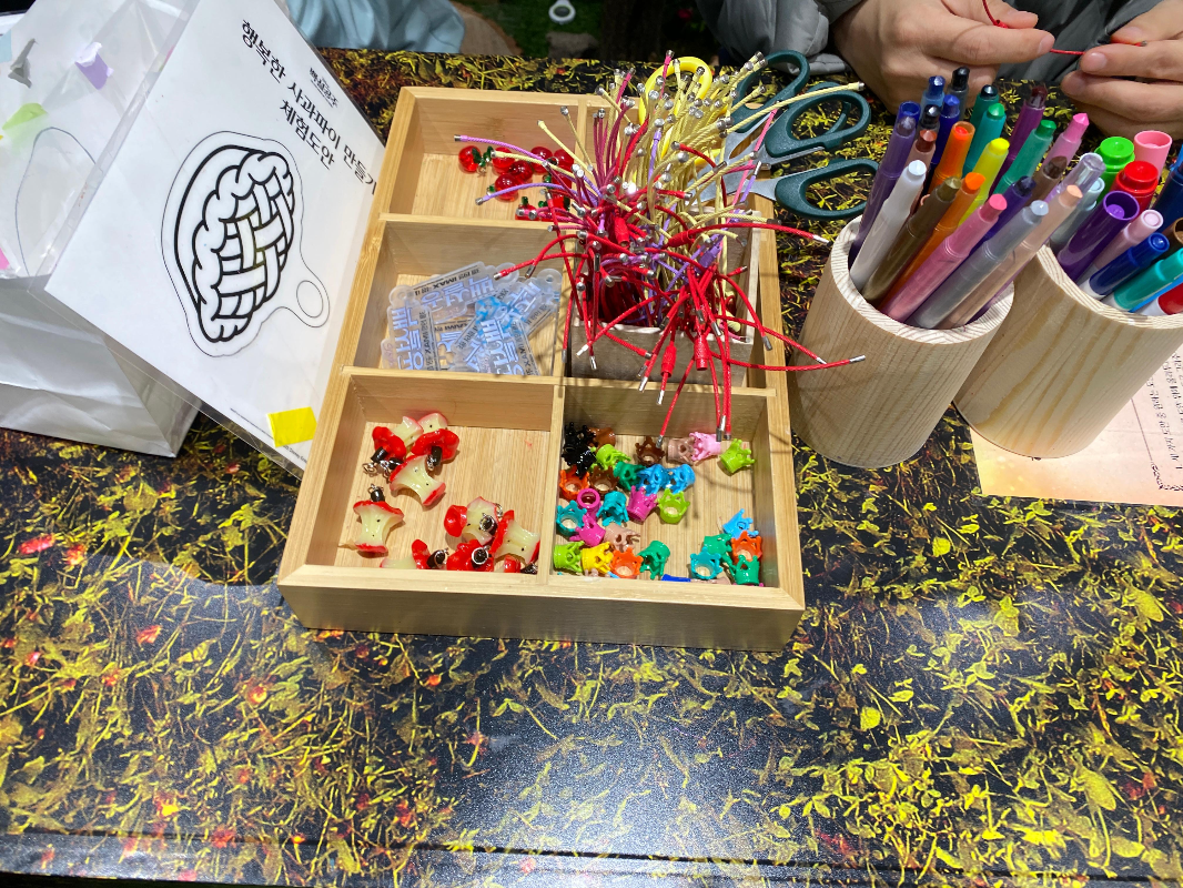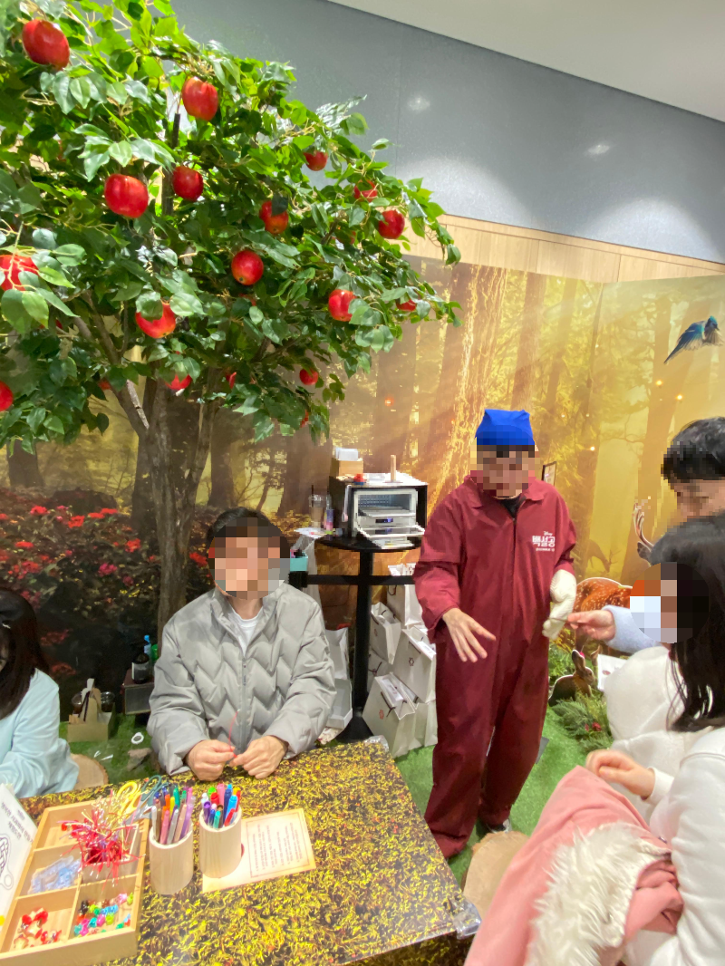그리고 마지막 행복한 사과파이 만들기 존에서는 빨간 사과가 열린 사과나무 아래서 행운의 사과 뽑기 이벤트랑 사과 모양 키링 만들기 체험도 할 수 있었다. 인형 판매도 하고 있었고, 오며가며 사람들이 많이 참석 하는걸 목격했다.