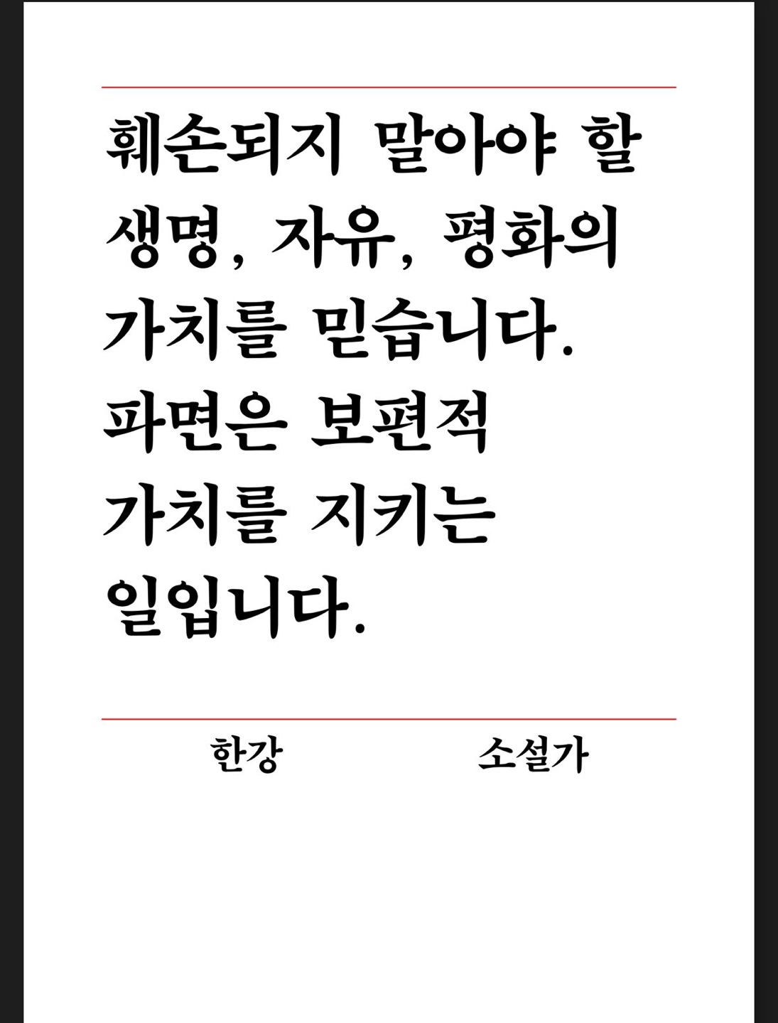 파면은 보편적 가치를 지키는 일입니다. _ 한강 소설가