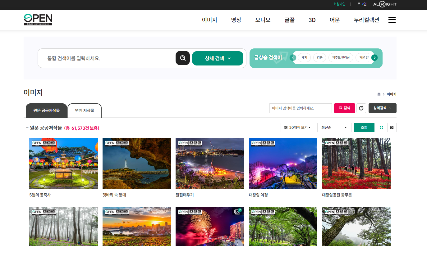 - 주관 : 한국관광공사(KTO)에서 운영하는 무료 고화질 한국 관광 이미지 라이브러리