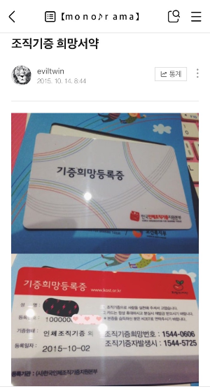 본인은 조직기증 희망서약을 오래전에 하였다.