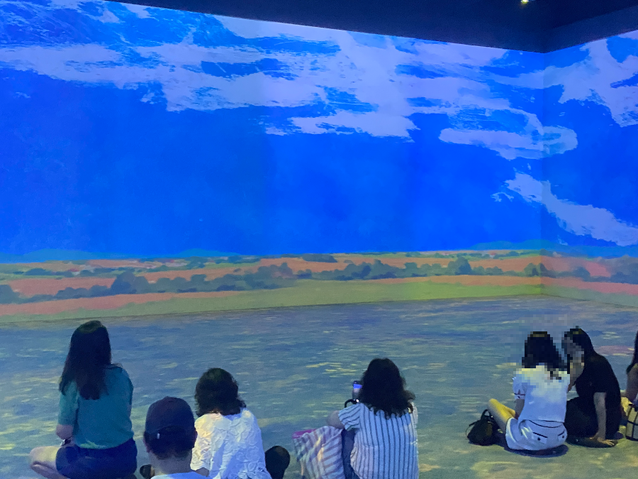 전시회는 똑같은 두 공간으로 되어 있고, 벤치(소파)에 앉거나 바닥 방석에 앉아 자유 감상하는 방식이고 이걸 몰라 바닥에 앉아 보다가 허리가 많이 불편 했습니다. 일찍 입장하여 꼭 벤치에 앉으세요! 저는 거의 정각 전 도착했어요. 그라운드 시소 명동은 처음이라 몰랐거든요. 후기 찾아볼 생각도 안 하고 간 잘못