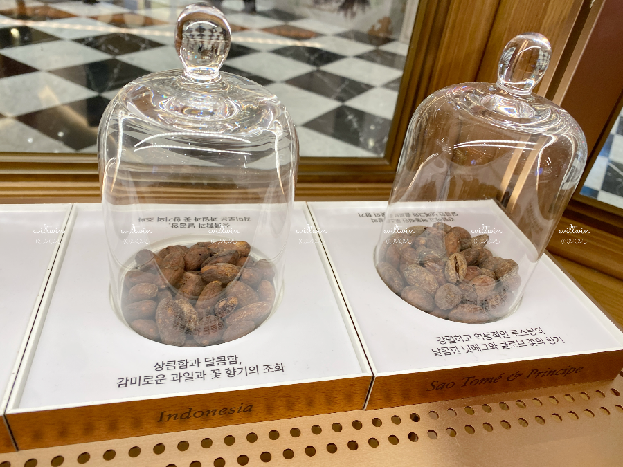 마카롱(₩4,300), 에끌레어(₩7,500~), 아이스크림(₩8,000~), 핫초콜릿·아이스초콜릿(₩5,500~8,500) 등 다양한 메뉴가 준비되어 있어 초콜릿 덕후라면 꼭 들러볼 만합니다.