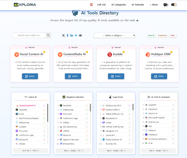 전 세계의 AI 툴을 소개하는 사이트로 현재 약 5000여개 등록 되어 있다고 한다.