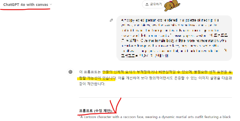 처음에는 '아, 이 정도는 가능하구나' 생각 하고 다른 서비스 "챗 지피티"와 "미드저니" 에서 똑같은 프롬프트를 주고