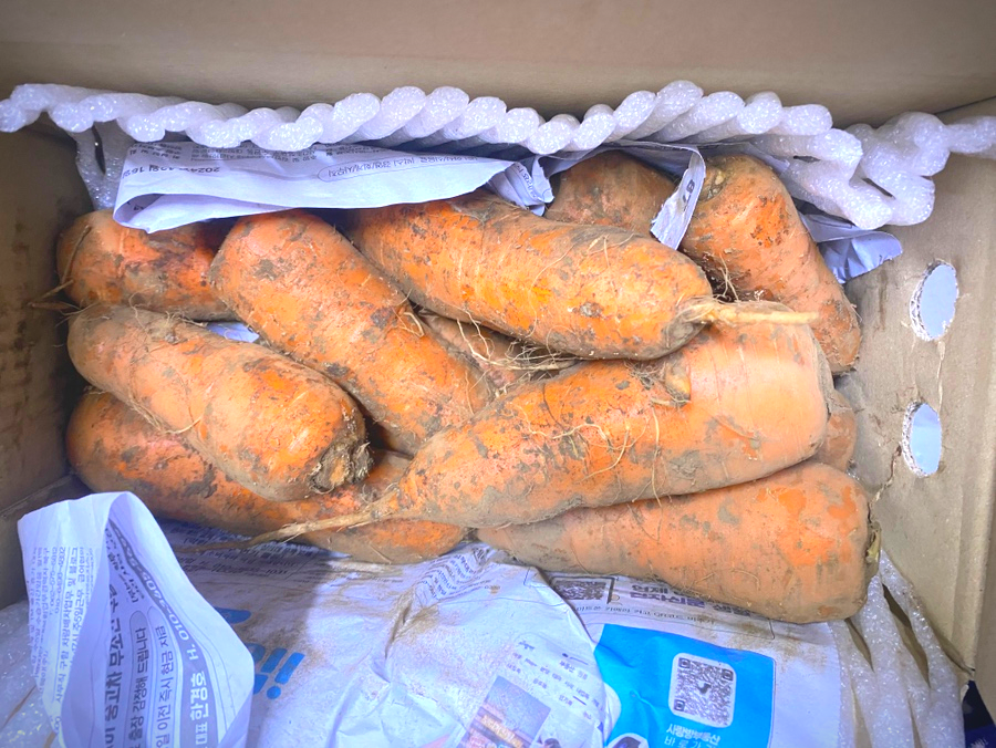 동네 마트나 이마트 배송 등으로 당근을 구입했더니 비싸서, 광고 보고 들어가 봤다. 인스타 광고에서 제주 구좌 흙당근 2KG를 8900원 무료배송에 팔고 있었다. SNS에서 누군가가 한 달 내내 당근을 먹었더니 눈 시력이 좋아졌다고 글 쓴 거 보고 사과랑 갈아 마셔볼까 하고 구매했다.